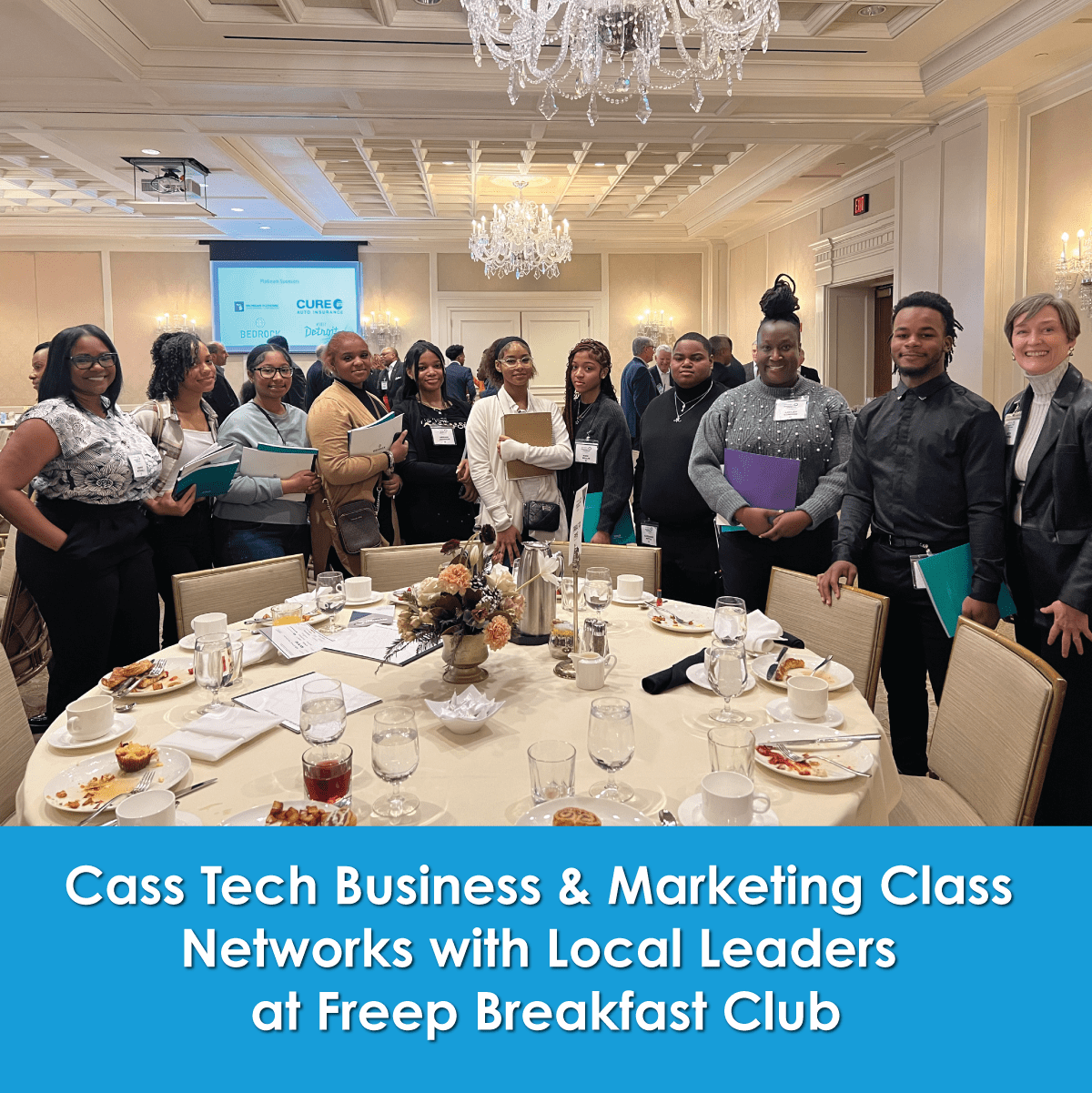 On November 30th, eight Cass Tech students who are part of the Career Technical Education (CTE) department’s Business and Marketing class were invited to attend the Freep Breakfast Club, which brings together local leaders to network and discuss important issues.