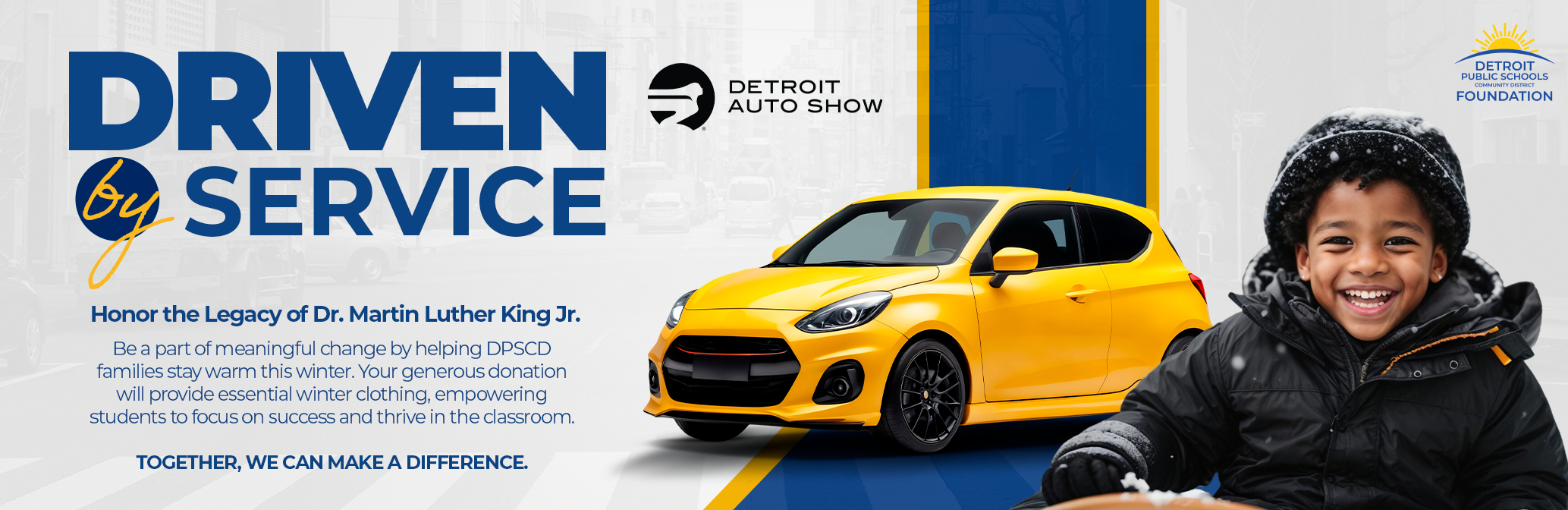 As Detroit braces for winter, the Detroit Public Schools Community District Foundation (DPSCD Foundation) is proud to partner with the Detroit Auto Show for a transformative initiative to support DPSCD students. Introducing Driven by Service Day, a new event honoring Dr. Martin Luther King Jr.’s legacy of service.