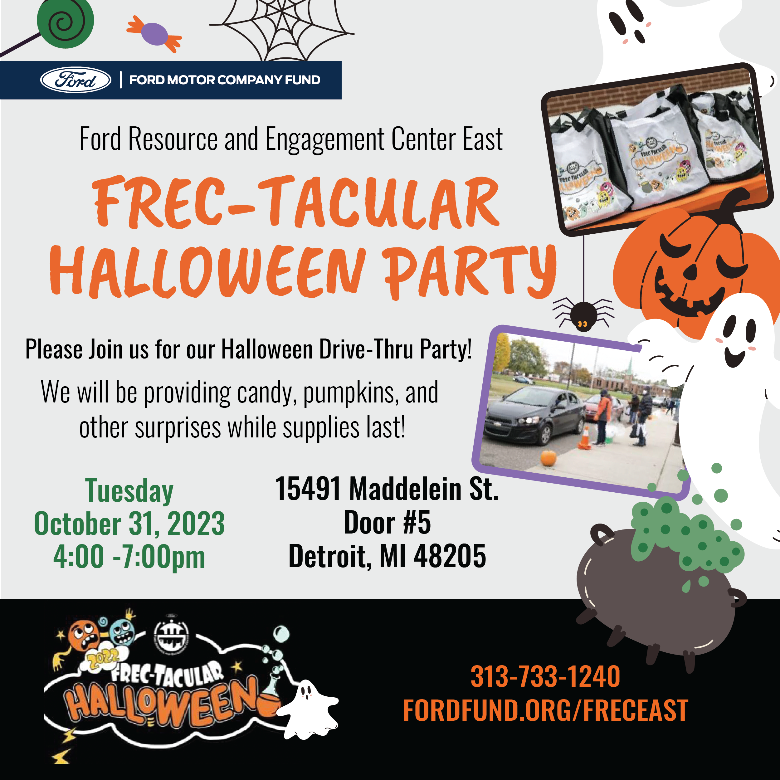 For more details and information, visit fordfund.org/freceast or call 313-733-1240. Get ready for a howling good time at FREC East’s Halloween Drive-Thru Party! ????????️????